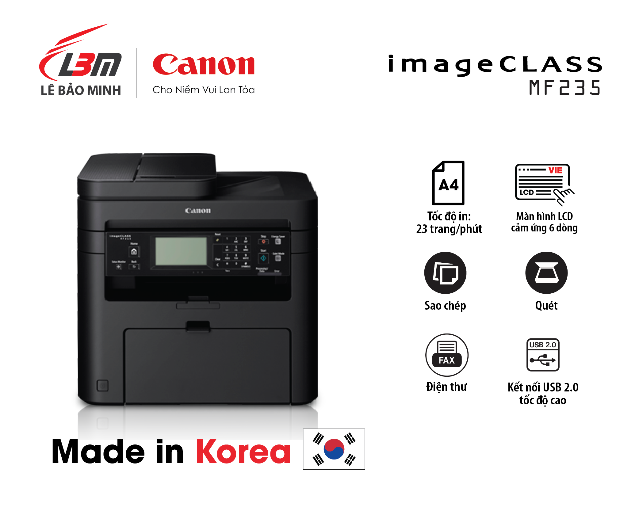 Máy in Laser đa chức năng Canon MF235 (In| Copy| Scan| Fax| ADF| A4| A5| USB)